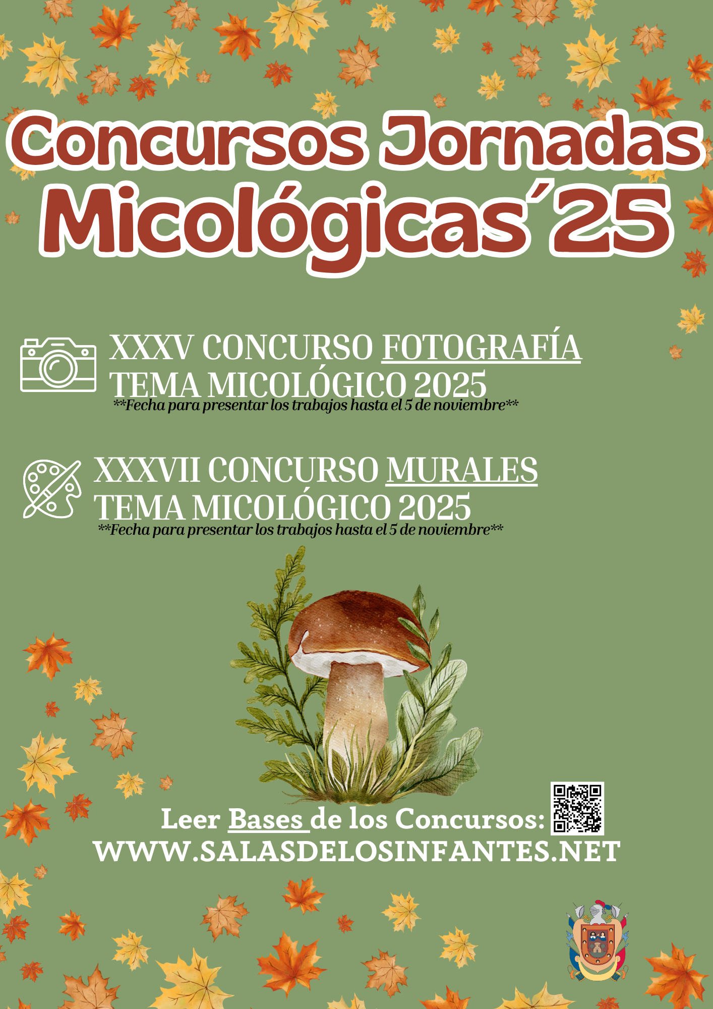 Bases de ambos bajo la imagen. Archivos adjuntos: BASES XXXV CONCURSO FOTOGRAFÍA TEMA MICOLÓGICO 2025.pdf BASES XXVII CONCURSO MURALES TEMA MICOLÓGICO 2025.pdf